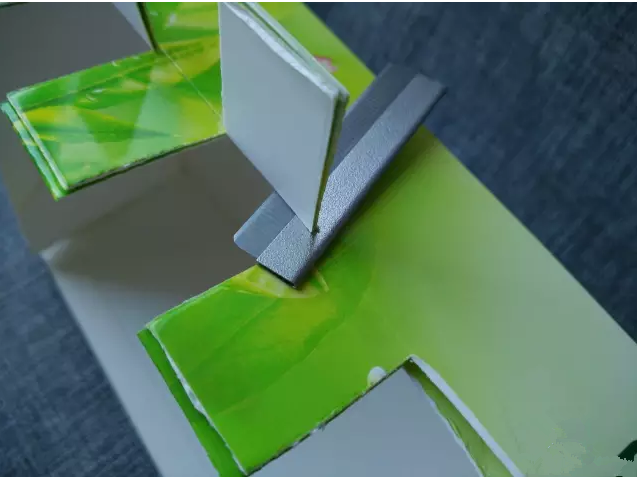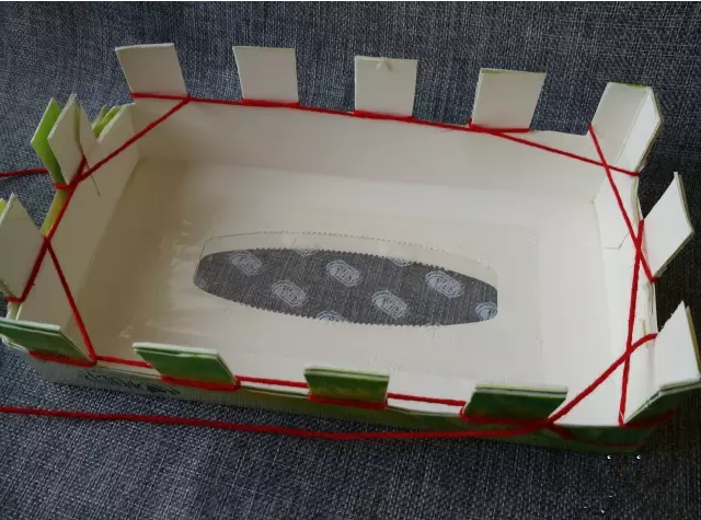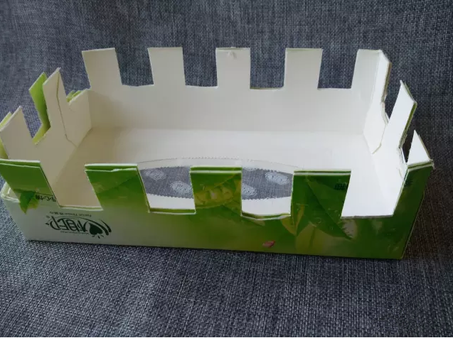 將其中一個(gè)紙巾盒的側(cè)面兩個(gè)棱用刀片切開