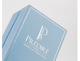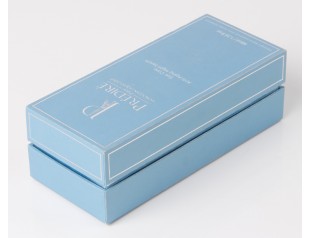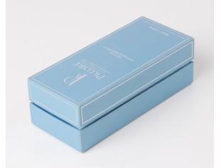 化妝品圍邊禮盒采用157g銅版紙裱1000g灰板,單色印刷,商標(biāo)燙銀,圍邊用銀光紙裱灰板。化妝品盒整體采用淺藍(lán)色作為紙盒主打色,加上銀色LOGO和盒邊白色的邊沿線搭配,清新,簡約。化妝品盒包裝設(shè)計采用成型的EVA內(nèi)托,與產(chǎn)品完全吻合,固定產(chǎn)品起到起到緩沖的作用。