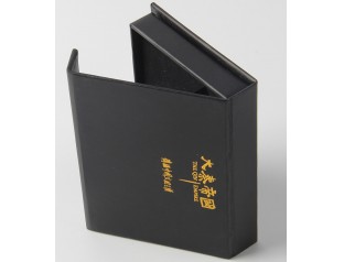 這是一個用來裝紀念刀具的禮盒,盒身為黑色顯得莊重,很適合它紀念盒的身份,盒子表面的燙金文字很是醒目;盒子覆了啞膜,雖然不能像覆光膜那樣發(fā)出噌亮噌亮的光芒,但是亞光膜更顯質感;盒子內部的題字也是用了燙金工藝,塑料內托是刀子的模型,把刀子放進去就嵌到里面,不易脫落;這個盒子的設計非常的精巧,邊角處理也特別的精致。