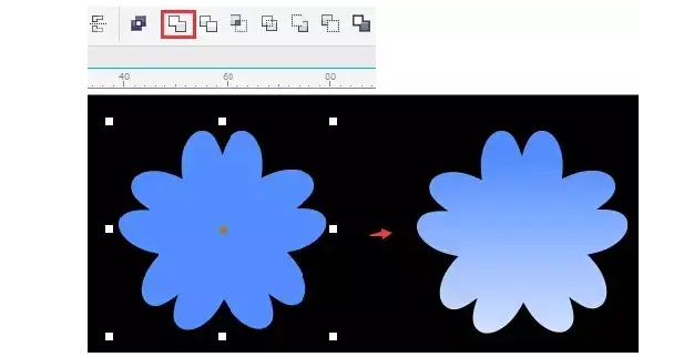設(shè)計(jì)服裝吊牌的第三步:填充漸變色 將所有心形圖形全選,執(zhí)行屬性欄中的“合并”命令,合并多個(gè)心形對(duì)象以創(chuàng)建帶有共同屬性的單個(gè)曲線對(duì)象,并將該對(duì)象進(jìn)行漸變顏色填充,以你喜歡的顏色來(lái)填充,沒(méi)有標(biāo)準(zhǔn)。