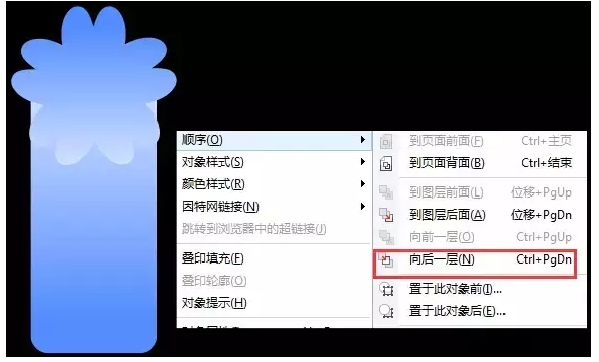 設(shè)計(jì)服裝吊牌的第五步:調(diào)整順序 鼠標(biāo)右鍵單擊“圓角矩形”在彈出的快捷菜單中選擇“順序”→“向后一層”,如圖所示。