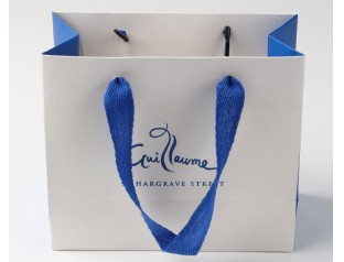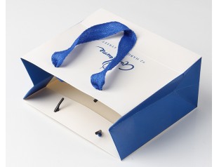 這款t恤紙袋的袋身給人方正大氣,但又不缺少流線圓潤的元素,藍(lán)、白相間的顏色搭配給人渾然一體的感覺。t恤本來就給人以一種青春活力之感,用來包裝它的t恤紙袋當(dāng)然也要是青春靚麗的啦,而藍(lán)色和白色就是活力慢慢的顏色。紙袋的文字logo設(shè)計(jì)讓它有了一絲調(diào)皮感。簡約的設(shè)計(jì)使得t恤紙袋就像個超凡脫俗的精靈,大氣又不失清新,客人見到無不駐足欣賞。