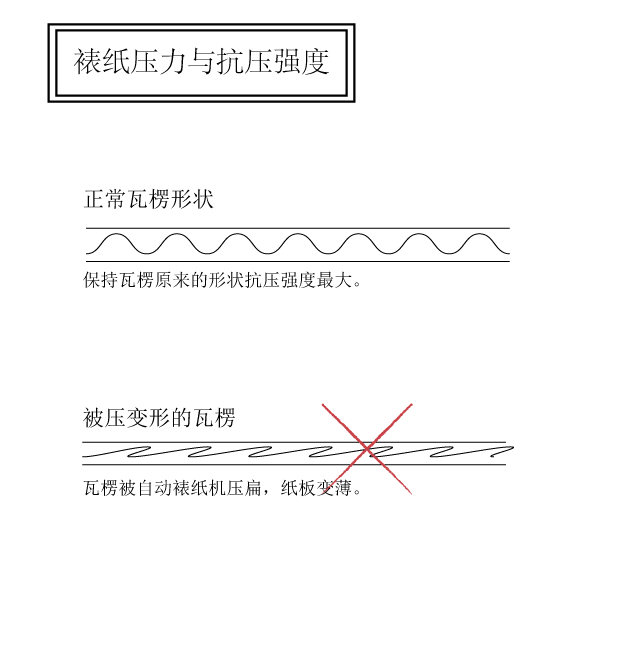 有的客戶希望不希望盒子的切面看見瓦楞,也有工廠裱紙師傅為了防止裱合不良,過分加大壓床的壓力、或者膠水輥的壓力,導(dǎo)致瓦楞被壓變形,犧牲了瓦楞紙盒的抗壓強(qiáng)度,對此包裝印刷廠家在裱紙的環(huán)節(jié)應(yīng)該提醒工人不要過度用力按壓瓦楞。
