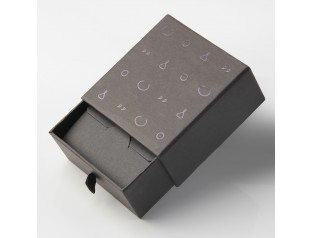 此款首飾包裝盒,采用了常見的開合型翻蓋盒的款式,材質(zhì)是pu皮包膠胚,商標(biāo)燙銀。首飾盒包裝整體用黑色作為底色,醒目的銀色LOGO位于盒子中心,黑白搭配,變得更加簡單和樸素首飾盒選用植絨裱EVA內(nèi)托在保護(hù)好產(chǎn)品的同時(shí),也彰顯其高檔大方。