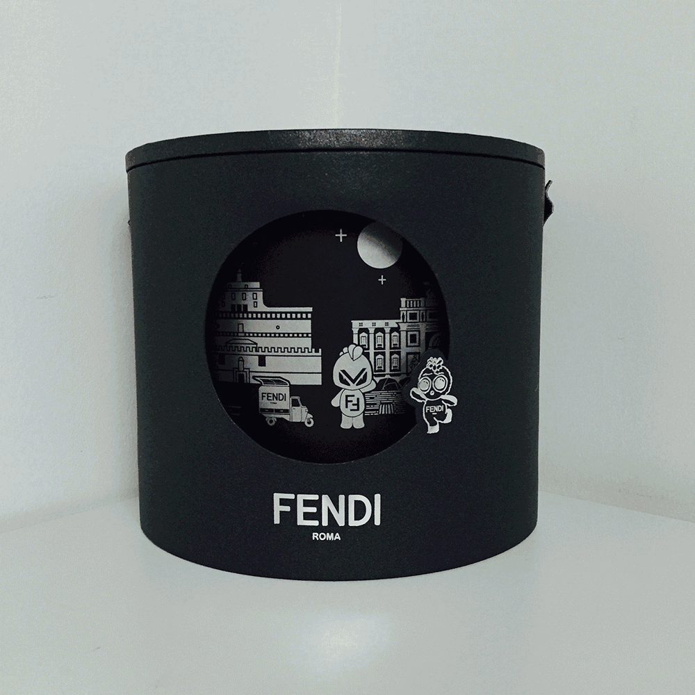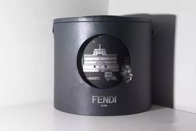 Fendi的月餅盒子大型且別致,是圓柱形,外面站了一個Fendi小怪獸,寫著“Fendi 羅馬”。