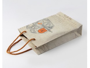 這款褲子禮品袋定制以白牛皮紙為原料,袋身、logo由CMYK四色彩印印刷而成,袋子表面過啞膠;白牛皮紙?zhí)烊坏募±斫o人環(huán)保又不失單調(diào)的感覺,無需過多的雕琢鑲嵌就充滿藝術(shù)的氣質(zhì),很文藝清新范;褲子禮品袋采用尼龍繩作為拎手,這顏色很有亮澤的尼龍繩給整體偏沉悶的紙袋帶來了亮點(diǎn),是點(diǎn)睛之筆。