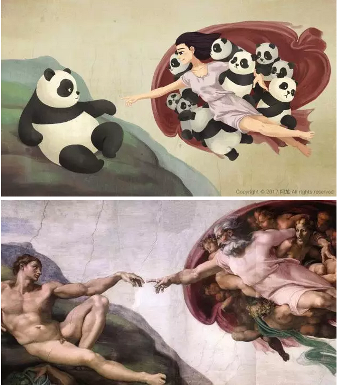 隨著網(wǎng)絡(luò)技術(shù)的不斷發(fā)展、信息傳播的手段越來越多,以前只能去動(dòng)物園也不一定看得到的國寶通過個(gè)大網(wǎng)絡(luò)平臺與大家見面,人們可以通過直播看到國寶的日常生活狀態(tài),也因此被它們呆萌的性格給圈粉。當(dāng)然,國寶的魅力不僅限于中國境內(nèi),那些外國友人也被這些圓滾滾的國寶給迷得神魂顛倒,這不,最近,有個(gè)名叫阿尨along的插畫師火了。他的一組大膽、新奇、可愛畫風(fēng)的插畫,受到了網(wǎng)友瘋傳,畫中的主角是咱們的國寶大熊貓滾滾。在他的插畫中,滾滾有著各種各樣的身份——它時(shí)而變作國外名畫中的主角,一會成為中國古代名畫的人物,一會又是知名電影中的形象。讓人不得不感嘆阿尨的腦洞之大。