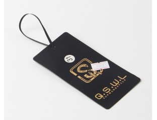 此款商標(biāo)吊牌廠家選用黑卡紙,商標(biāo)燙金,黑卡紙是特種紙的一種,其表面平整光滑,挺度好,拉力好,耐破度高此款吊牌設(shè)計選用了黑色作為主體色,搭配醒目燙金的LOGO,更彰顯其品牌價值吊牌設(shè)計采用了經(jīng)典的黑色和金色配合,沉靜的黑色能隱去燥熱,璀璨的金色能喚起您喜悅的心情