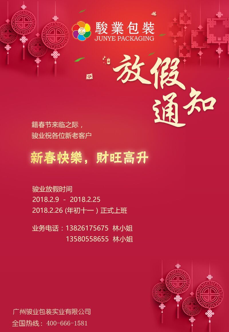 駿業(yè)包裝廠在這里提早祝各位新春快樂,闔家團(tuán)圓,丁財(cái)兩旺!