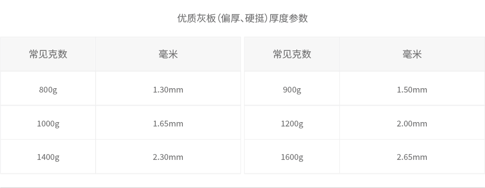 | 里紙 | 1.材料:灰板,灰底黑,灰底白,中纖板(木板);2.厚度:800,900,1000,1100,1200,1400,1600gsm(根據(jù)大小給建議) |