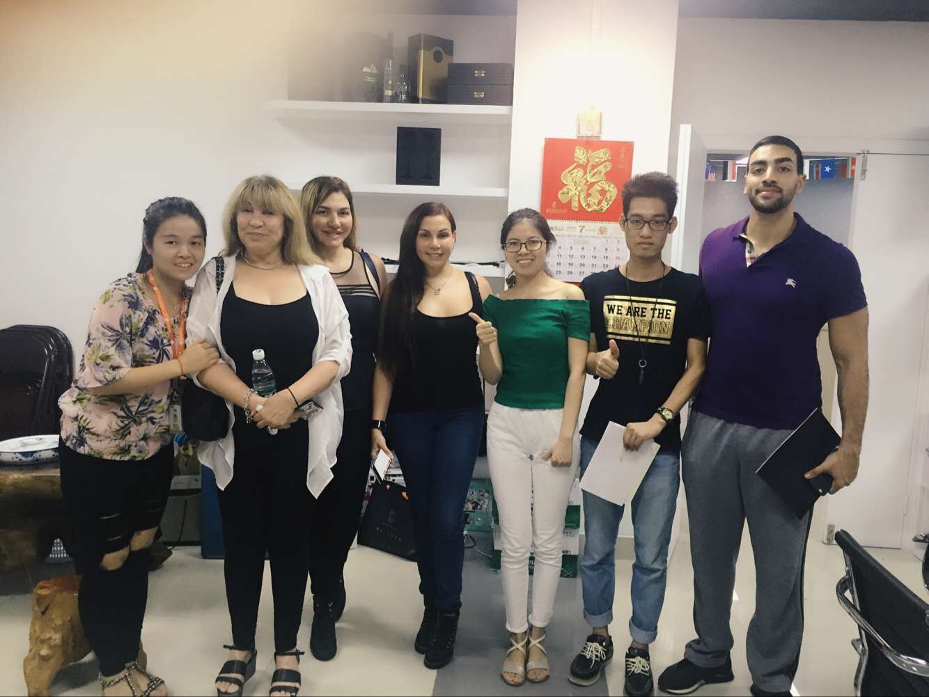 下面是阿聯(lián)酉客戶首次來(lái)駿業(yè)包裝考察后,當(dāng)場(chǎng)簽訂商標(biāo)吊牌制作的銷售合同后大合照。