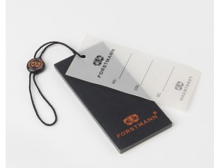 吊牌設計整體選用了黑色作為主元素,醒目燙銀的LOGO和黑色搭配,更彰顯其品牌價值。