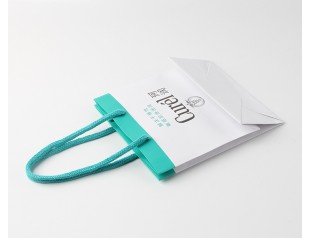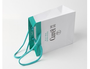 此款禮品包裝紙袋采用250g單銅紙,雙色印刷,過啞膠,自扣尼龍圓繩手提紙袋設(shè)計(jì)走小清新的風(fēng)格,整體采用白色作為主打色,搭配天藍(lán)色紙袋設(shè)計(jì)的提手處選用了天藍(lán)色的尼龍圓繩,小清新的白色和藍(lán)色搭配是藍(lán)天白云這樣一對(duì)經(jīng)典的組合,給人舒心的感覺