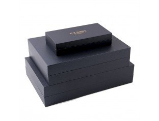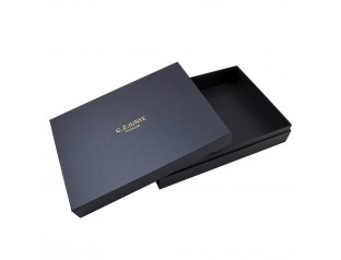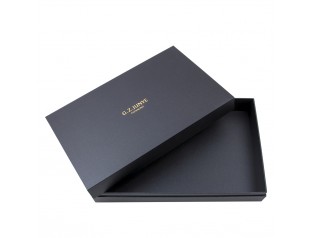 此款皮具包裝盒,表面那磨砂質(zhì)感的碳黑平面面紙,就知道此包裝是專門為英國產(chǎn)品包裝的。皮具包裝盒,堅硬厚實,表面平滑磨砂質(zhì)感,光澤靚麗,產(chǎn)品價值檔次瞬間大升。